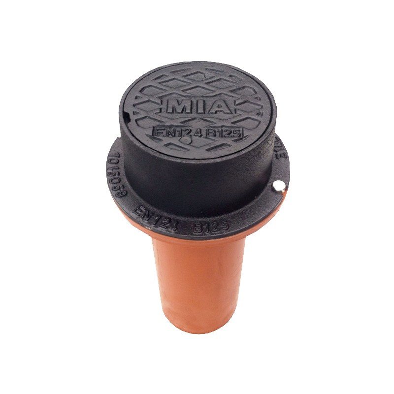 Lättbetäckning monterad på 160mm kragat teleskoprör (total längd 300 mm). Passar utvändigt på ett 110 mm stigarrör. Lock med låsarmar.
