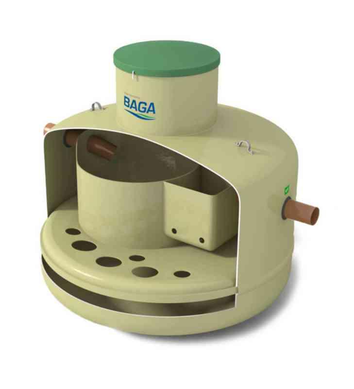 Slamavskiljare för BDT vatten. Våtvolym 1200 l, integrerad pumpbrunn.