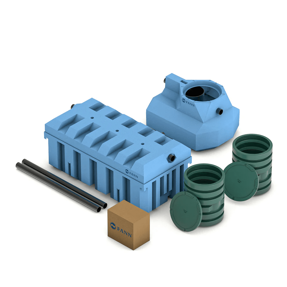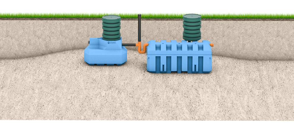 FANN Slamavskiljare tillsammans med FANN BDT INDRÄN Biobädd blir ett kompakt och mycket effektivt avloppssystem.