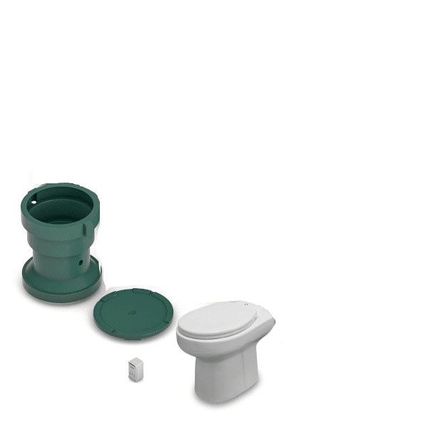 Detta är ett komplett vakuumbaserat toalettsystem designat för att fungera även i miljöer där vanliga toaletter inte är möjliga. Systemet bygger undertryck i en sluten tank som enkelt placeras på marken eller grävs ner om så önskas. Tack vare vakuumtekniken behövs mycket lite vatten, och inga rörliga delar kommer i kontakt med avloppsvattnet – vilket minimerar risken för fel.