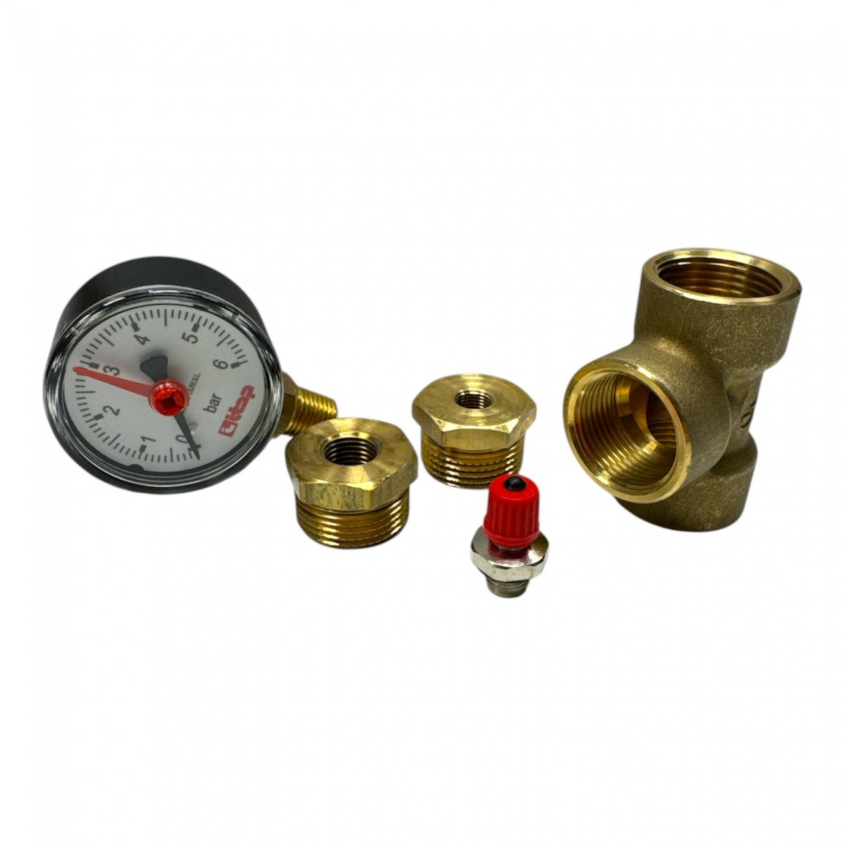 Används vid provtryckning av golvvärmesystem med luft. Ansluts direkt på påfyllningsventilen (R20) på fördelaren.