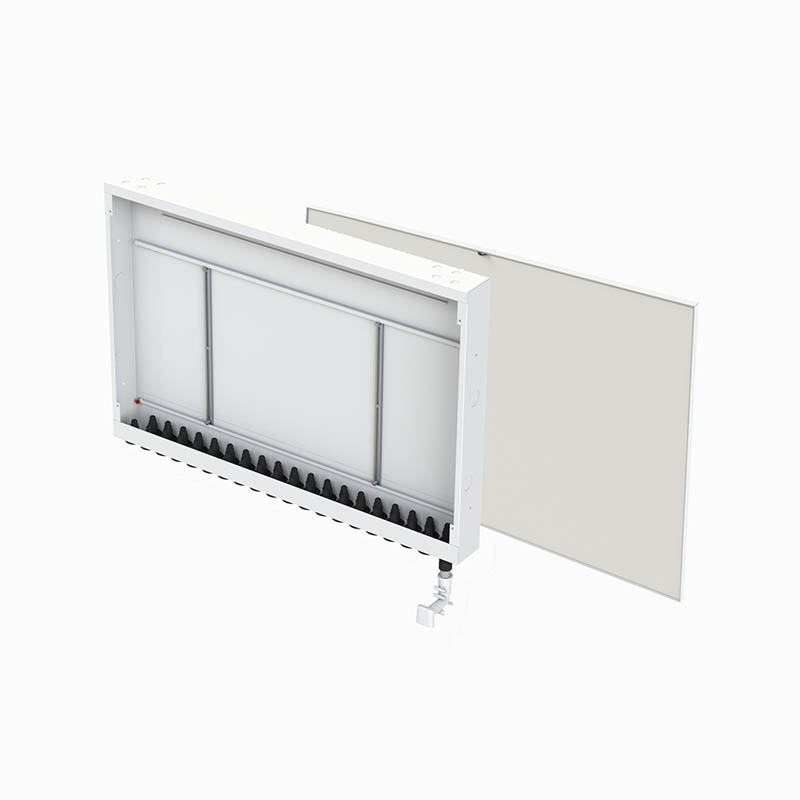 Installationsskåp för vattenburen golvvärme. Passar till BEVISAB golvvärmefördelare i storlekar från 12-16st slingor. Skåpet är tillverkat i vitlackerad plåt och är godkänt för säker vatten med tät botten och genomföringar av gummi för golvvärmeslangen. Eventuellt läckage leds ut genom ett urtag i botten på skåpet och vidare genom ett rör till en plats där det snabbt kan upptäckas.