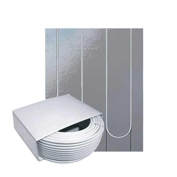 Detta golvvärmepaket innehåller Floores spårade EPS-skivor (17 mm tjocklek) med aluminiumfolie och 16 mm Alupert golvvärmeslang. Paketet är dimensionerat för att täcka ett angivet antal kvadratmeter golvyta, med fördelaren placerad centralt. EPS-skivorna är försedda med färdiga rakaspår och spår för vändningar som förenklar installationen och säkerställer en jämn och effektiv värmefördelning.