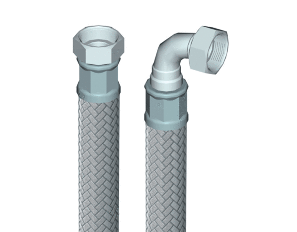 Rostfri flexslang även kallad anslutningsslang R20 (Inv. / inv. med lekande mutter i vinkel)