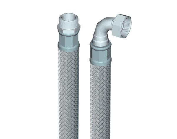 Rostfri flexslang även kallad anslutningsslang R15 (Utv. / inv. med lekande mutter i vinkel)