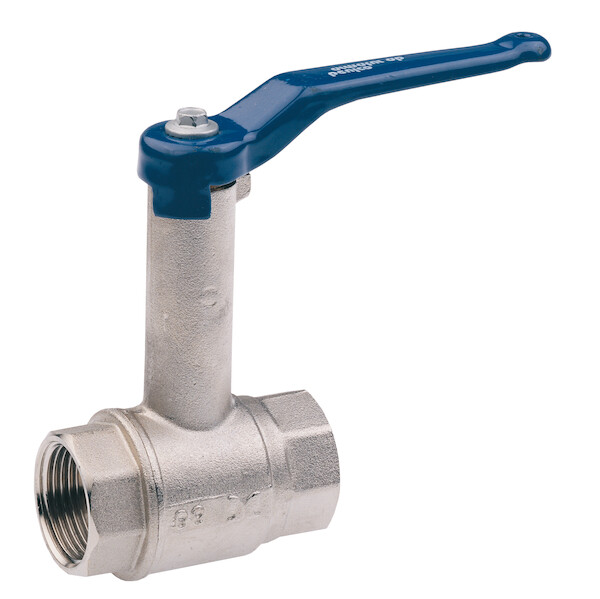 Kulventil med fullt genomlopp, invändig gänga, handtag och hög spindelhals. Användningsområde: Kylsystem (max 50% glykol), Luft, Värmesystem (max 50% glykol). Material: Mässing. Arbetstemperatur: -10ºC/+100ºC. Max Arbetstryck: Se tabell.