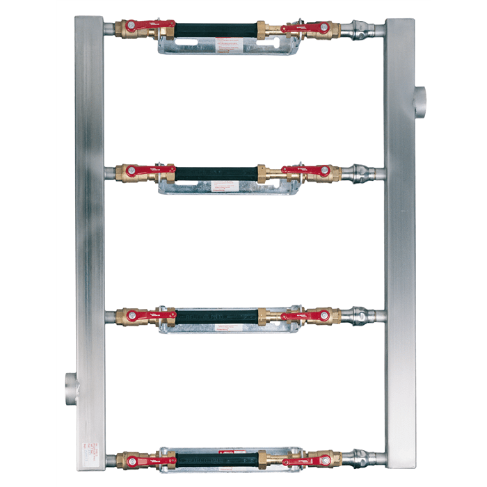 Parallellkopplad vattenmätarkonsol med kontrollerbar backventil för vattenmätare Q3 4 (Qn2,5) bygglängd 190 mm eller 220 mm och anslutning G25. Konsoler med ställbart väggavstånd som underlättar vid montage. En parallellkopplad konsol medför att du kan sätta t ex 3 mindre vattenmätare istället för en stor mätare och få ut samma flöde. Fördelar: - Mätnoggrannheten blir bättre vid låga flöde. - Lägre taxa på mindre mätare. - Längre utesittartid på mindre mätare, 10 år på upp till Q3 4 (Qn 2,5), däröver 5 år. - Vattnet behöver inte stängas av vid byte av mätare eftersom man kan ta en mätare i taget och ha flödet öppet genom de andra. Användningsområde: Tappvatten. Material: Avzinkningshärdig mässing, Rostfritt stål. Arbetstemperatur: +25°C. Max Arbetstryck: PN 10.