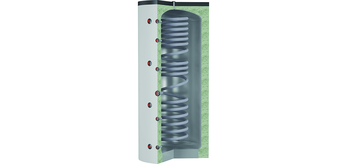 Effektiv lagring av varmt vatten för uppvärmning samt snabb varmvattenproduktion.
