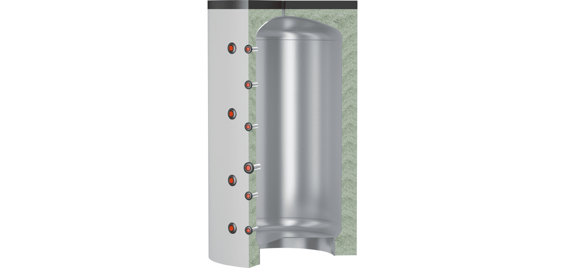 Används för att öka flexibiliteten och optimera verkningsgraden för biobränslepannor och för att ge en jämn tillgång av värmeenergi även när pannan inte är i drift. Lämplig för rum med lågt i tak.