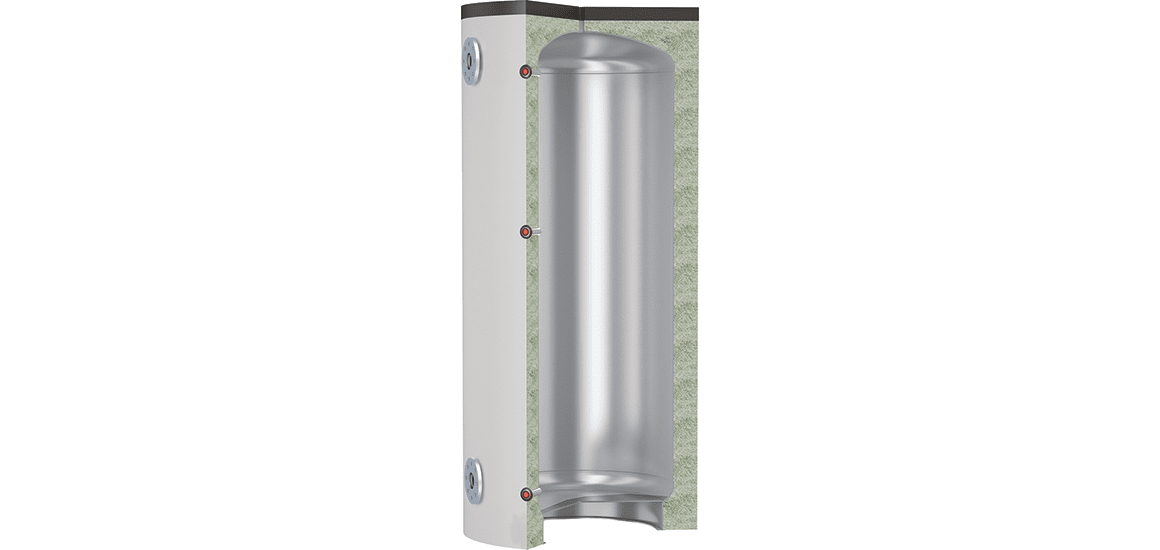 Används för att öka flexibiliteten och optimera verkningsgraden för biobränslepannor och för att ge en jämn tillgång av värmeenergi även när pannan inte är i drift. Lämplig för rum med lågt i tak. Dessa tankar används när flänsade anslutningar behövs.