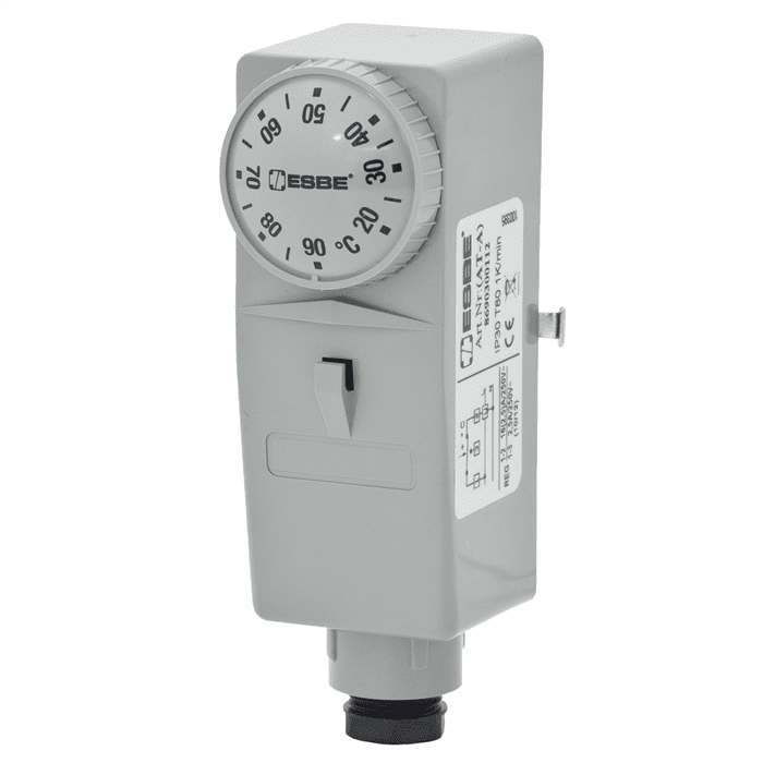 ESBE TSA100 är en PÅ/AV-termostat som består av en temperatursond som är ansluten till en strömbrytare. Strömbrytaren kan användas för till-/frånkoppling på basis av temperaturmätning, en elektrisk anordning t.ex. en pump, panna osv. TSA122 har extern inställning.