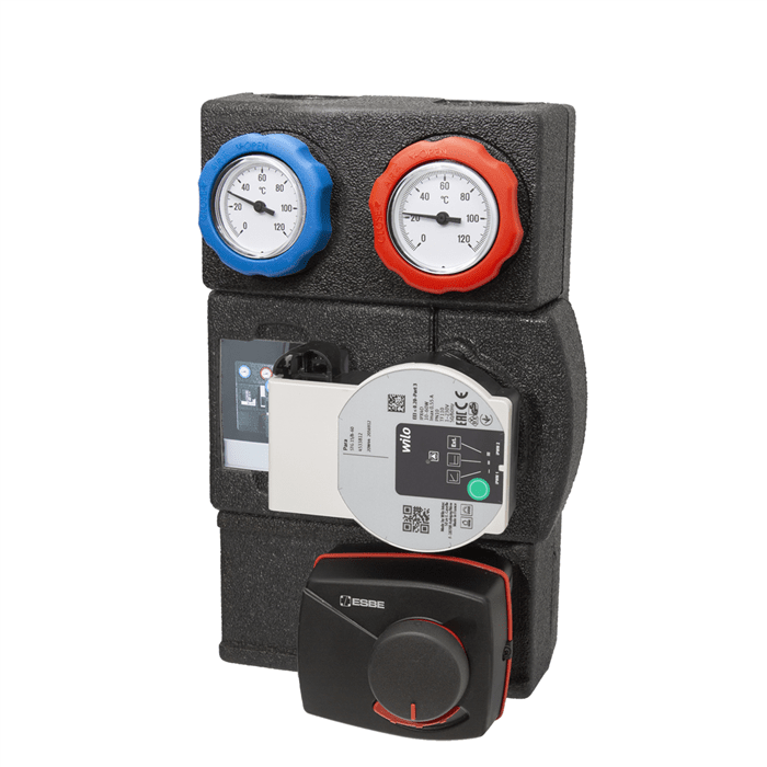 ESBE-serien GRA300 är en shuntgrupp som är avsedd för värmekretsar där enastående flödes- och temperaturreglering krävs. Den är utrustad med två avstängningsventiler med termometrar, patronbackventil, högklassigt isolerskal och högeffektiv cirkulationspump. GRA300 levereras med en 3-vägs progressiv shuntventil och ett ställdon. Shuntgruppen säkerställer bästa möjliga regleringsprestanda oavsett flöde och låg risk för överdimensionering, tack vare progressiv ventilkarakteristik, samt fungerar med de flesta regleringar på marknaden.