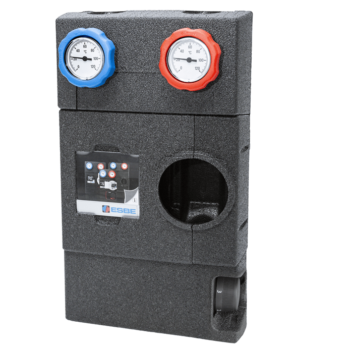 ESBE serie GFF200 är en shuntgrupp som är avsedd för värmekretsar där konstant temperaturreglering krävs. Den är utrustad med två avstängningsventiler med termometrar, backventil och högklassigt isolerskal. GFF200 levereras med 3-vägs termostatisk ventil som medger konstant temperaturreglering av värmesystemet och justerbar temperaturinställning. ESBE shuntgrupp GFF200 är driftklar för 180 mm pumpar. Det smarta justerbara isolerskalet säkerställer att alla pumptyper isoleras på rätt sätt.