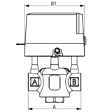 | Modell | Referens | DN | Kvs | Max. differentialtryck, Blandning [kPa] | Max. differentialtryck, Fördelning [kPa] | Anslutning | A [mm] | B [mm] | D [mm] | Vikt [kg] | RSK-nr. |