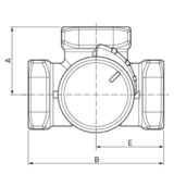 | Modell | Referens | DN | Kvs | Anslutning | A [mm] | B [mm] | C [mm] | D [mm] | E [mm] | Vikt [kg] |