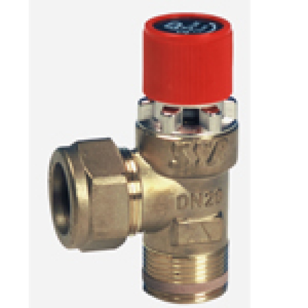 En säkerhetsventil för slutna värme- och kylsystem. Säkerhetsventilen öppnar vid angivet tryck för att skydda anläggningen mot övertryck.