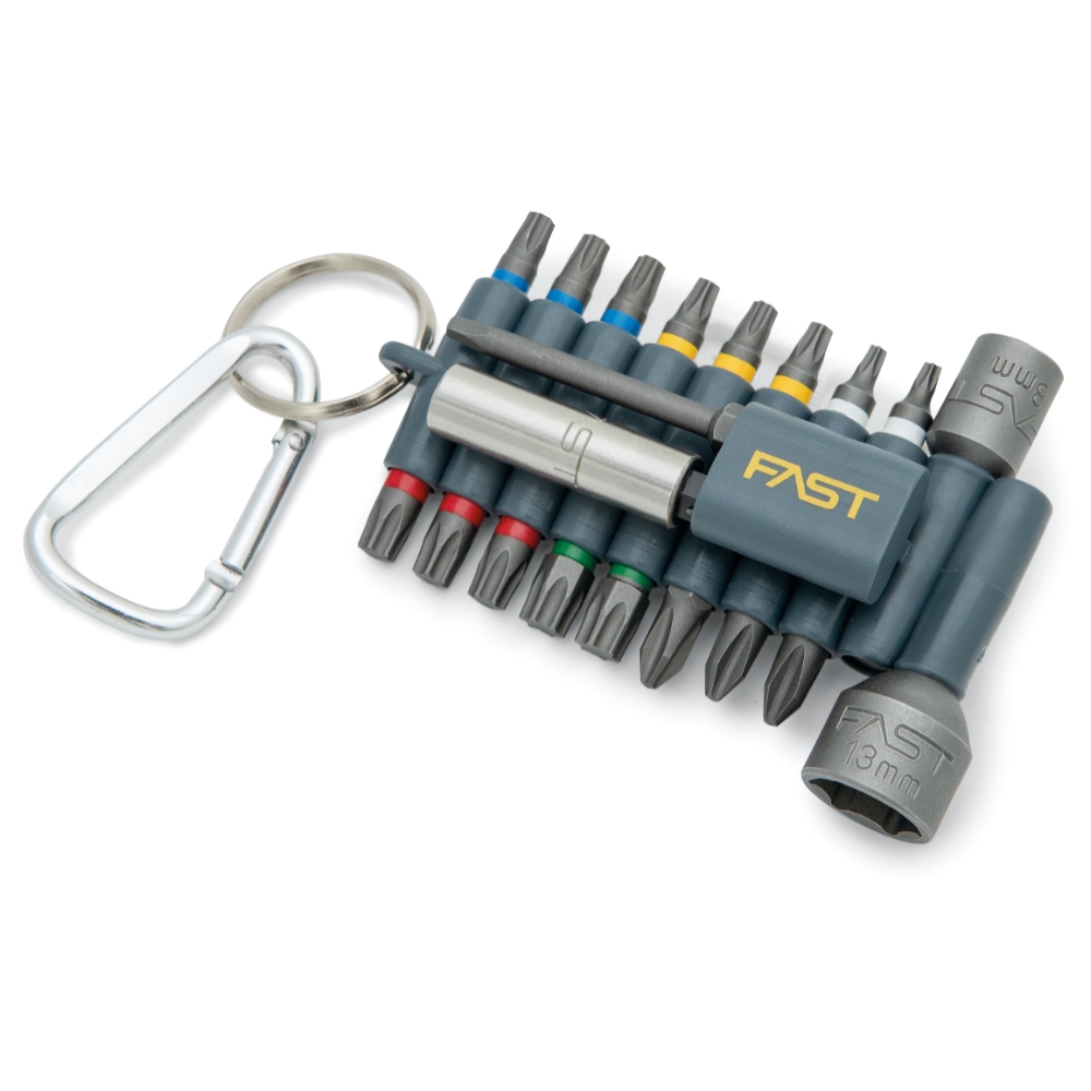 Bitssats i 20 delar. Specialframtagen för snickarens behov att hänga i bältet. Bits av s2+ stål, härdade och ytbehandlade. Vid beställning om 12 st set levereras de i en displaylåda.
