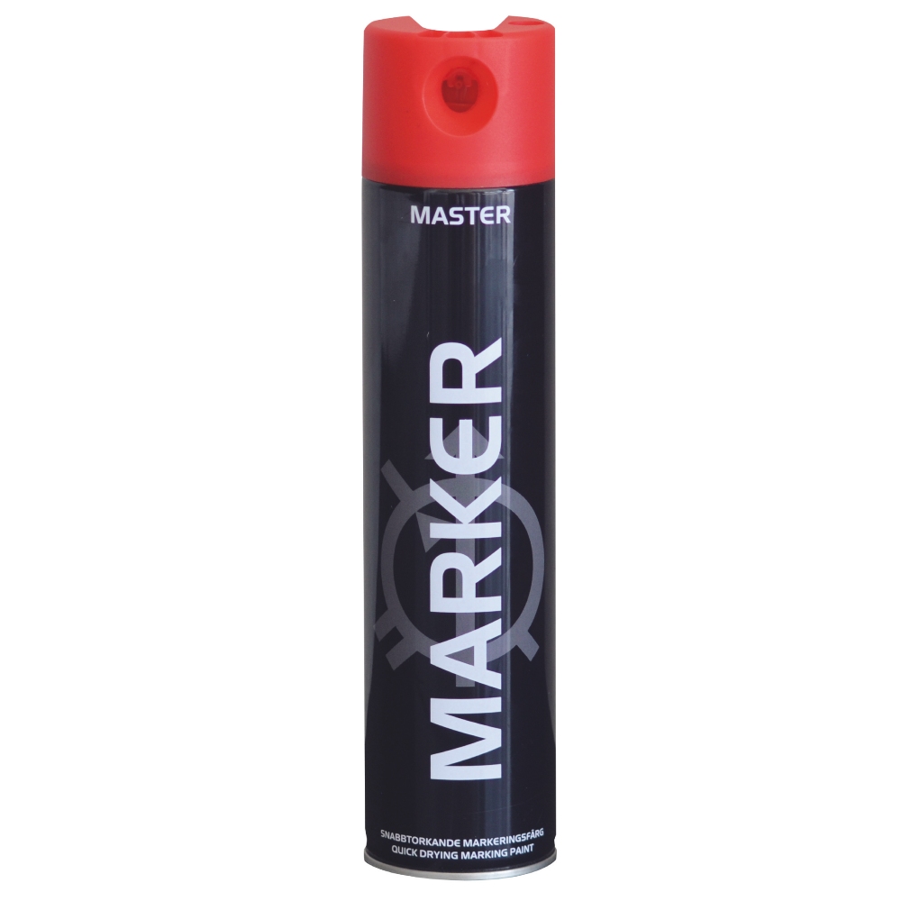 MASTER MARKER FLUORESCENT är en snabbtorkande fluorescerande märkspray som kan användas på underlag såsom asfalt, betong, gräs och grus m.m. Tack vare munstycket med förlängningsrör ges god möjlighet att rita symboler och skriva text. Master Marker är en standardspray för entreprenörer inom tele-, bygg-, el- och vatten och används inom byggnadsindustrin, gatuavdelningar, vägavdelningar och lantmäteri m.fl.
