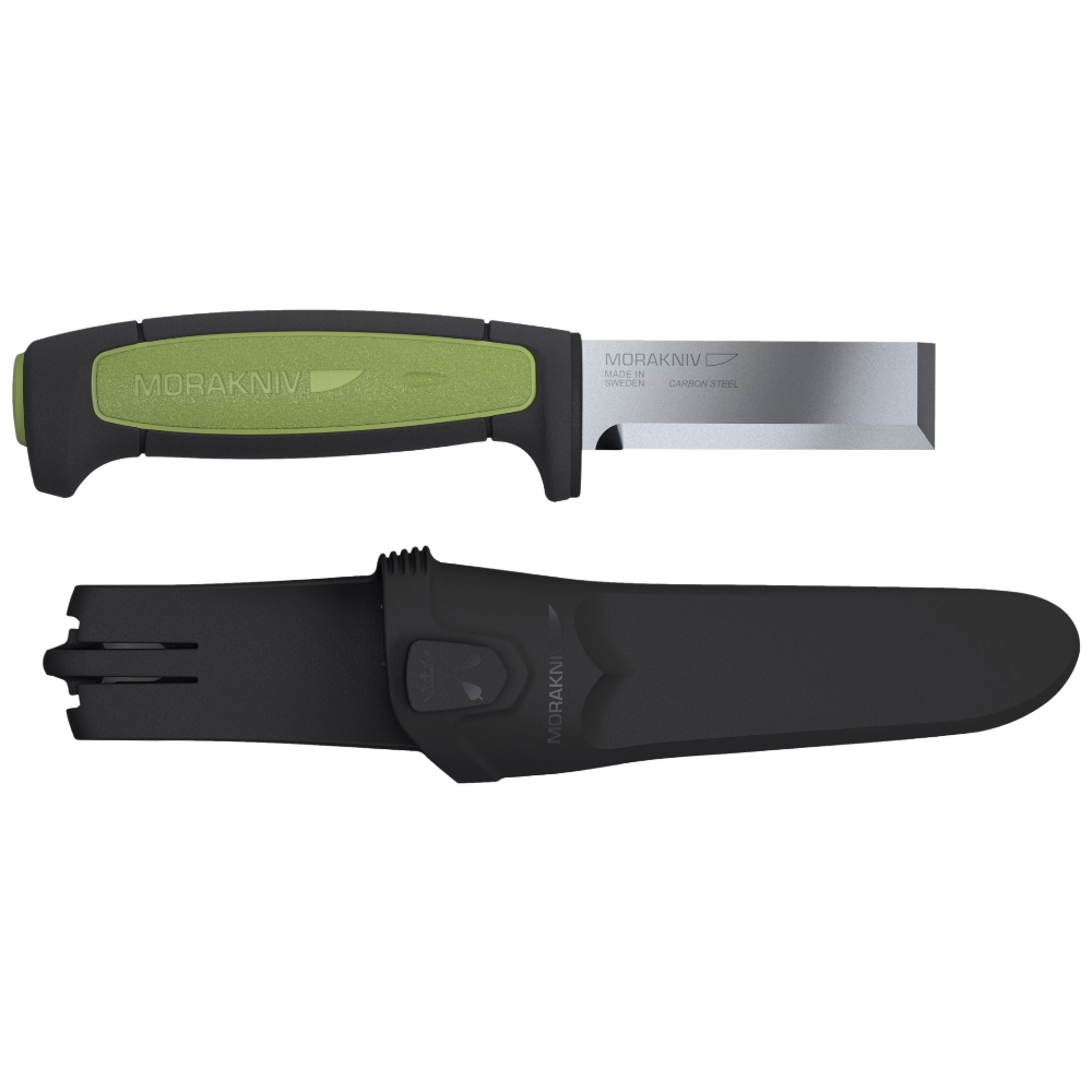Ergonomiskt skaft tillverkat av TPE-gummi vilket ger handtaget optimal friktion. Spolformsliknande rundning av skaftet gör att kniven alltid ligger rätt i handen. Ett enkelslipat robust blad av kolstål med ett rejält och extra slagtåligt skaft gör denna stämkniv till det självklara verktyget vid träarbeten.