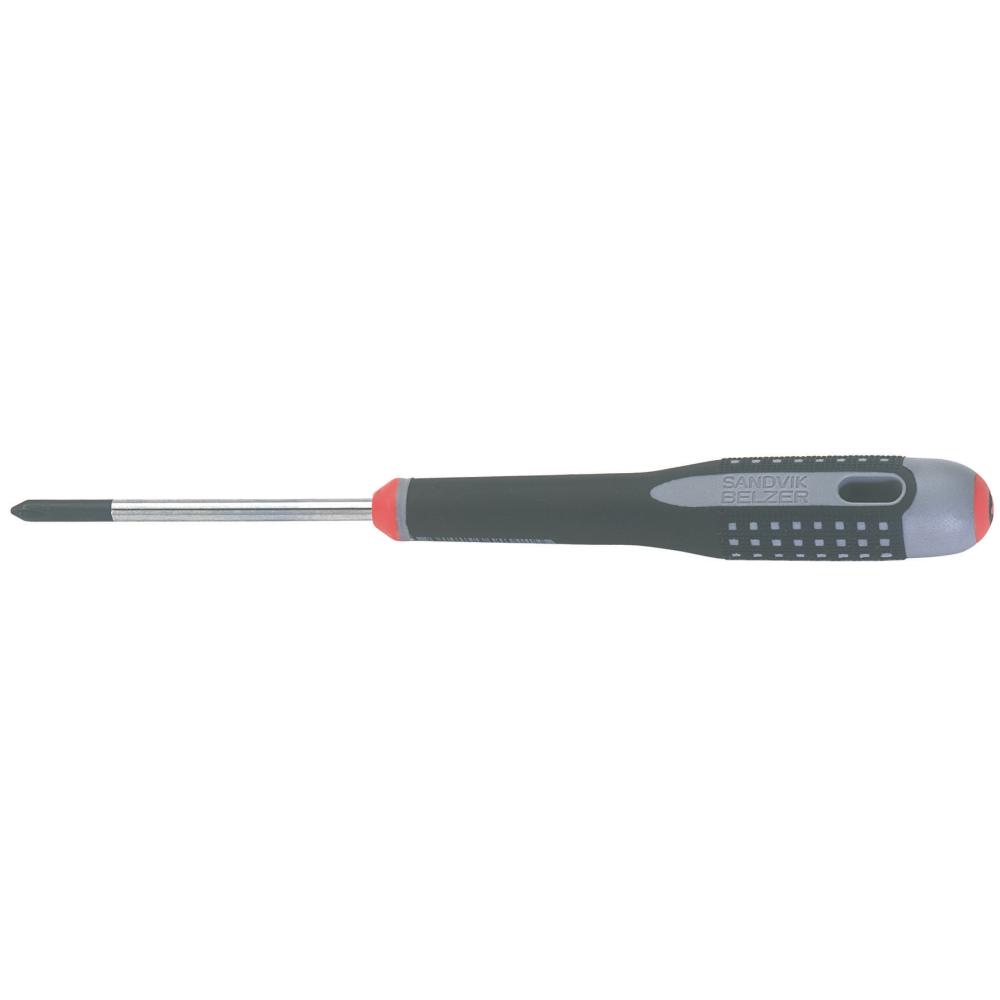 Rund klinga av specialhärdat vanadium extra stål, förnicklad och förkromad. Svartoxiderad spets för maximal precision. Ergonomiskt utvecklat trekomponentshandtag av polypropen och termoplastisk elastomer. Beständig färgmärkning i handtagens båda ändar för lätt identifikation av rätt skruvspets. *) Klinga med sexkant nyckelgrepp.